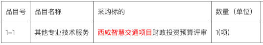 NO.1 西咸智慧交通项目 项目编码:西咸-2025-CZ-039 项目投资:25.54万元 采购单位:陕西省西咸新区财政金融局 中标单位:陕西融威工程项目管理有限公司 采购需求: 后台回复“西咸交通”获取项目联系方式