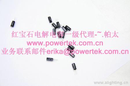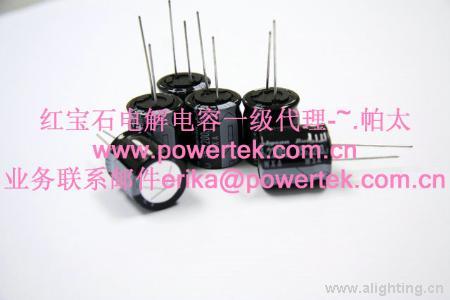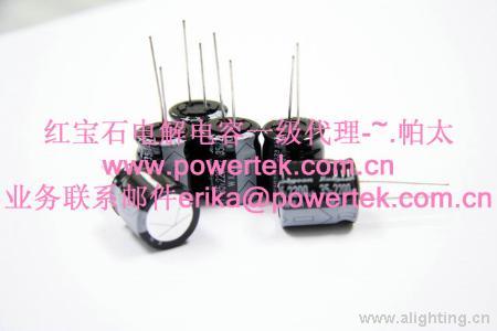 红宝石电容CFX系列 温度:105 ℃高频(线脚电容) 使用寿命: 5000H时间保证品 特征:电压大,容量小,其电压值为200~400V。 应用于节能灯、整流