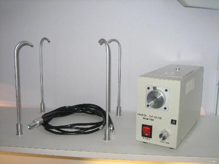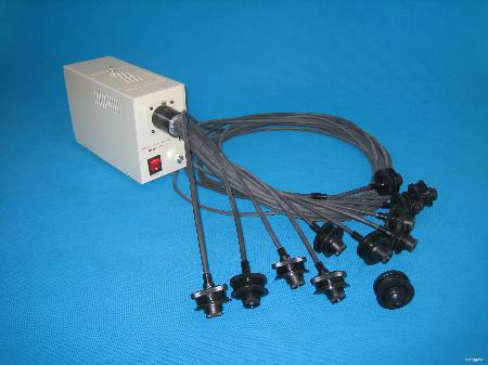 品名:玻璃光纤展柜照明 光纤:4.3mm玻璃光纤束1.2m*8条 光纤灯头:6mm直径*120mm弯管灯 光源:100W卤素灯光源,有温控保护 适用范围