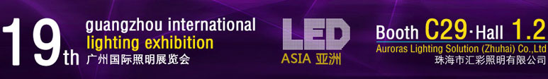 珠海市汇彩照明将参加2014年6月9-12日广州国际照明展会(法兰克福照明展),展位位于广州市海珠区琶洲国际会展中心1.2馆 C29号。热诚欢迎各位新老朋友莅临访问。 Auroras Lighting Solution Co.,Ltd will attend the 2014 Guangzhou International Lighting Exhibition from June9-12,you are warmly welcome to visit our booth Hall1.2,BoothC29.