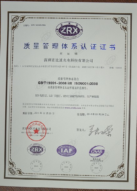 ISO 质量管理体系认证证书