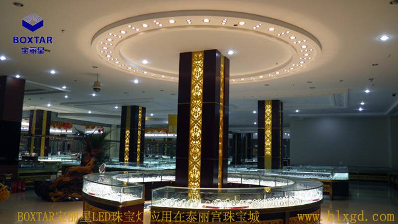 BOXTAR宝丽星高显LED珠宝灯应用在中国黄金珠宝专卖连锁店、LED黄金灯光、LED黄金照明、LED彩宝灯光