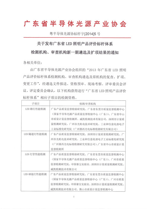 3月10日,广东省半导体光源产业协会公布最新一期广东省LED照明产品评价标杆体系检测机构、审查机构遴选及扩项结果,中国赛宝实验室、中国赛西(广州)实验室、广东产品质量监督检验研究院、深圳市计量质量检测研究院、广东省东莞市质量监督检测中心等10家单位成为LED标杆产品的指定检测实验室。