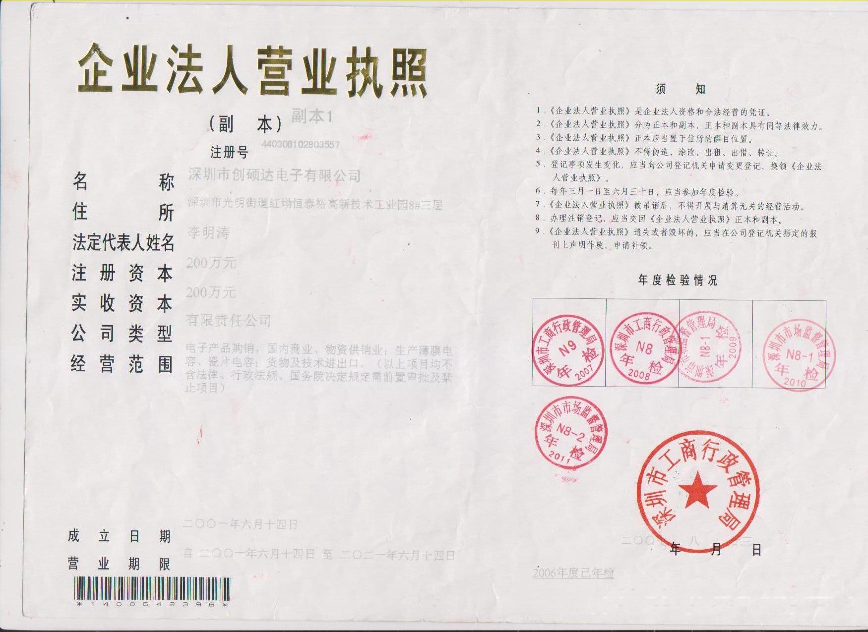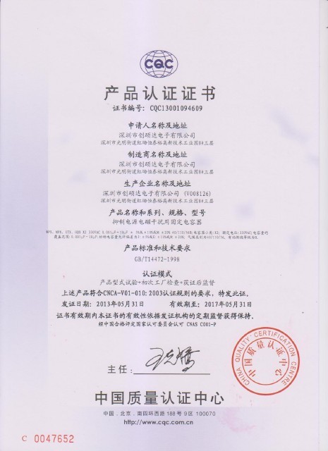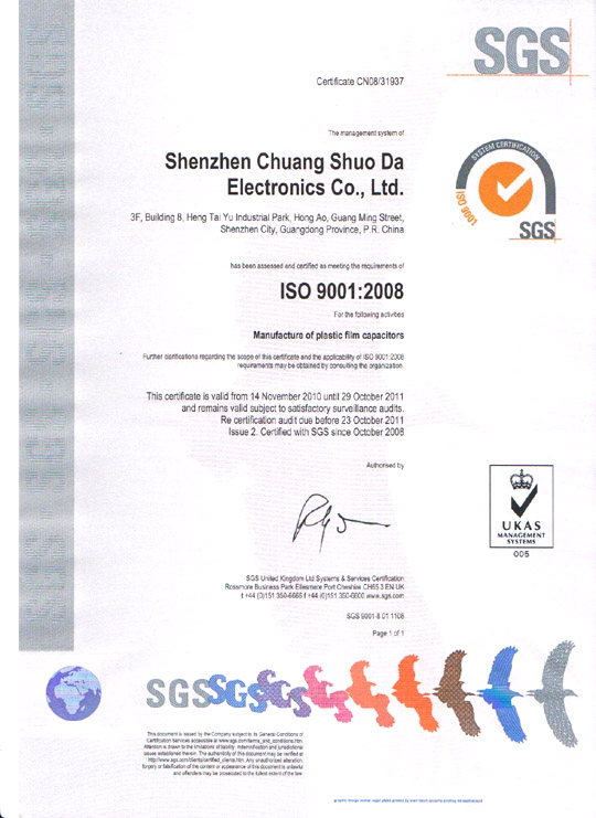 深圳市创硕达电子有限公司为台商投资企业,专业生产、销售全系列金属化薄膜电容和陶瓷电容。公司自1986年成立以来,凭借先进的全套进口设备和精湛的生产工艺以及全面推行国际质量体系,使我们产品以优异的品质,上乘的服务和极具竞争力的价格赢得了广大客户良好的声誉和口碑。