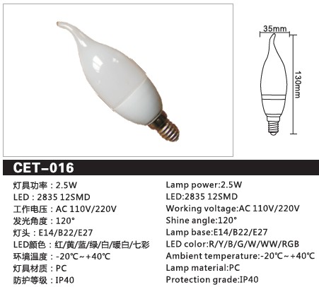 CET-016 2.5W/3W 塑料LED拉尾泡