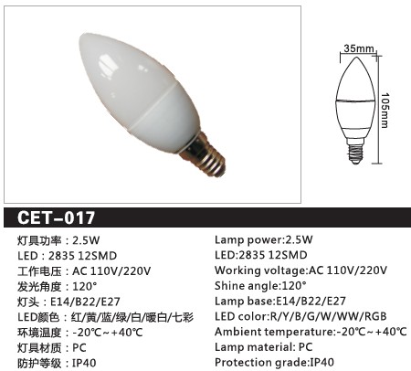 CET-017 2.5W/3W 塑料LED拉尾泡