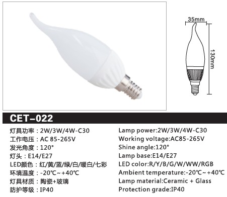CET-022 3W/4W 陶瓷LED拉尾泡