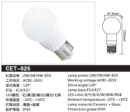 CET-025 3W/4W 陶瓷LED球泡
