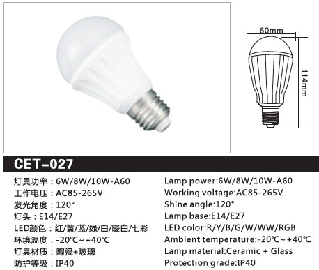CET-027 5W/7W/10W 陶瓷LED球泡