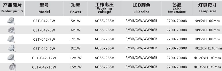 CET-042 5-15W大功率灯杯