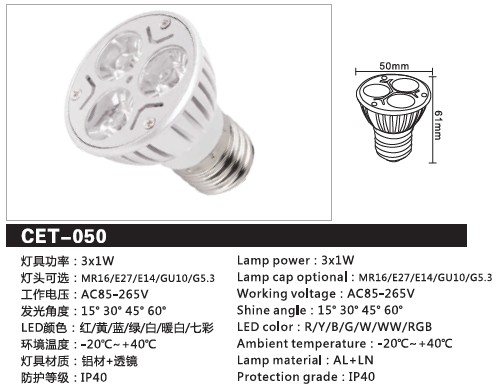 CET-050 3W大功率灯杯