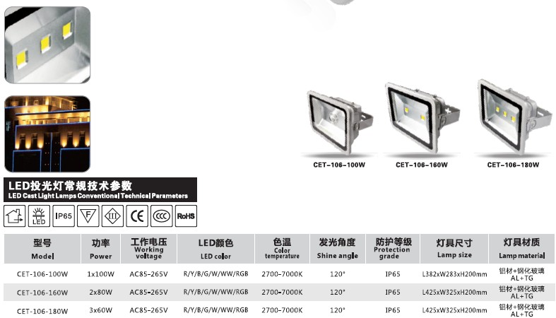 CET-106 100W/160W/180W LED投光灯