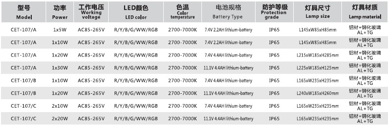 CET-107 5W-30W 充电式的LED应急投光灯