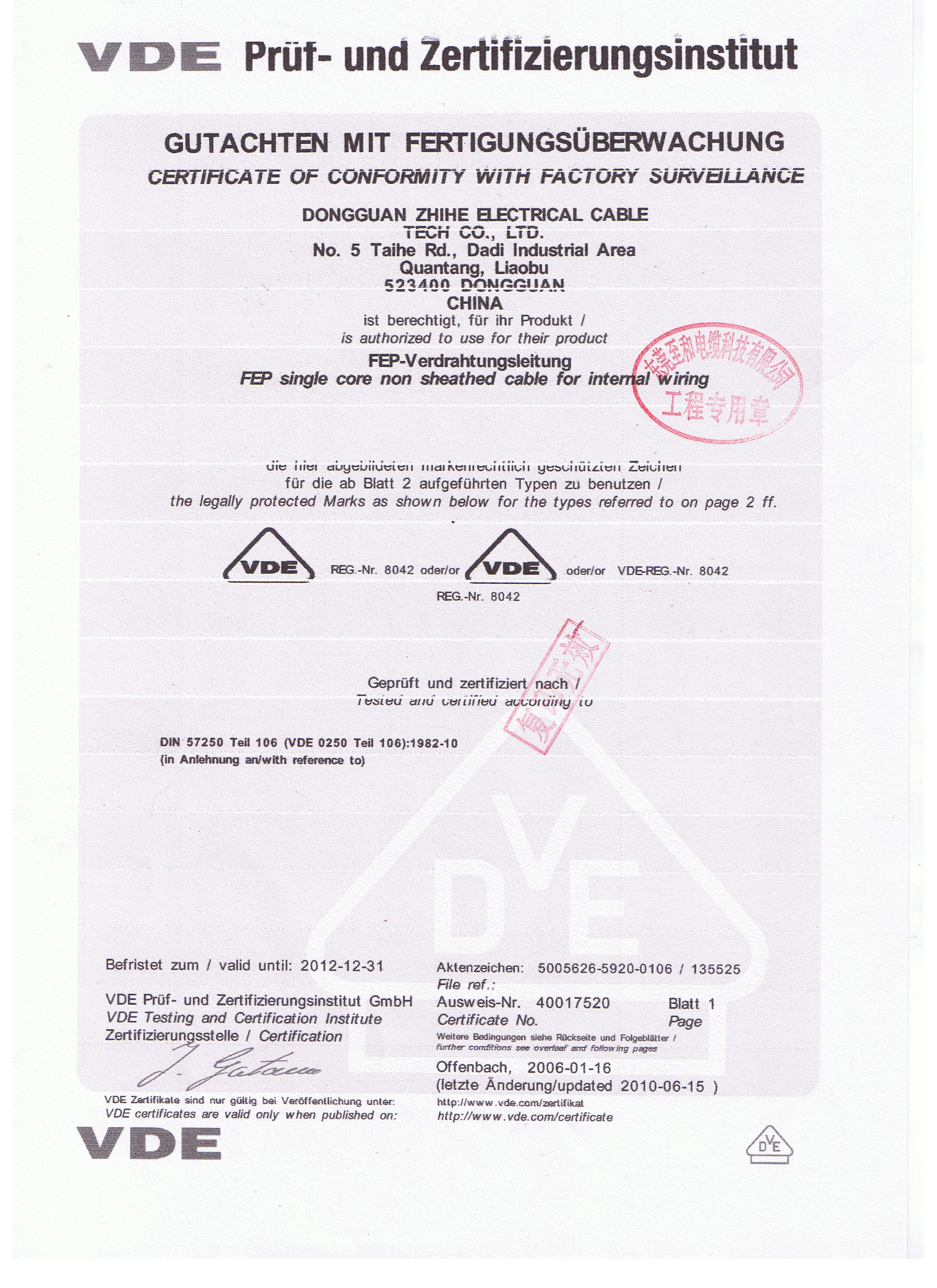 证书名称:VDE认证证书