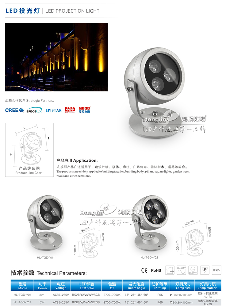 五、大功率LED投光灯照射距离达5-30米,特别适合建筑物楼体、户外广场的景观亮化,墙面、陈列品刷色。