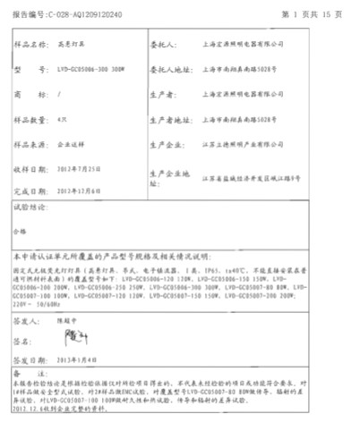 LVD-GC05006高悬灯是本公司自主开发的高悬挂灯具,采用纯铝反射器,抛光氧化处理,特殊角度反射设计,大大提高了光效;铝压铸电器箱,配以静电喷塑,整体美观大方;灯罩底部采用灯罩压扣固定,内装耐高温密封圈;钢化玻璃,透光性高。配用本公司土星无极灯,具有发光效率高、寿命长、显色性好、光线稳定、无闪烁、节能、光线柔和、光输出稳定等特点。该产品防护等级为IP65,应用场合包括工业厂房、仓库、体育馆、大卖场、超市等室内应用环境.