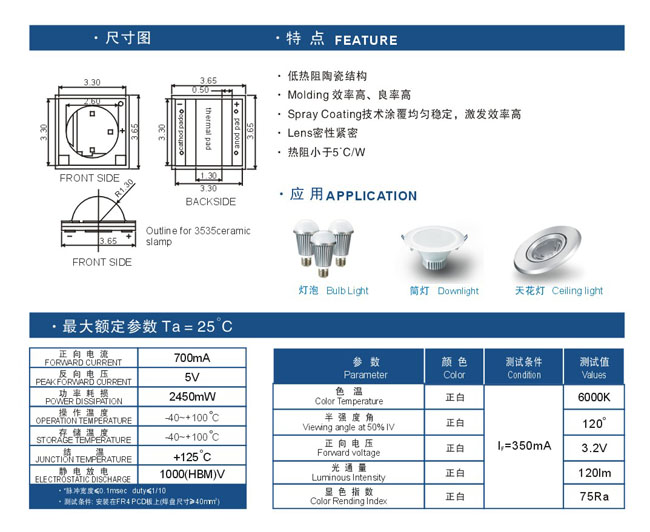 英特来陶瓷基板SMART-LAMP正白灯珠