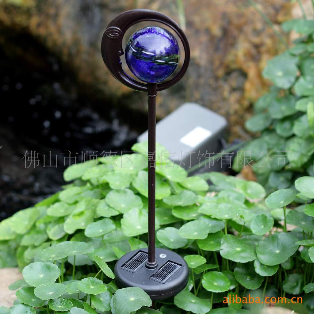 供应LED太阳能灯 太阳能花园灯 月亮形+蓝色玻璃罩