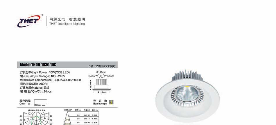 同辉电子科技股份有限公司   >   产品   >  同辉高亮3寸10w4寸15w46寸20w压铸铝足瓦足功率COB筒灯
