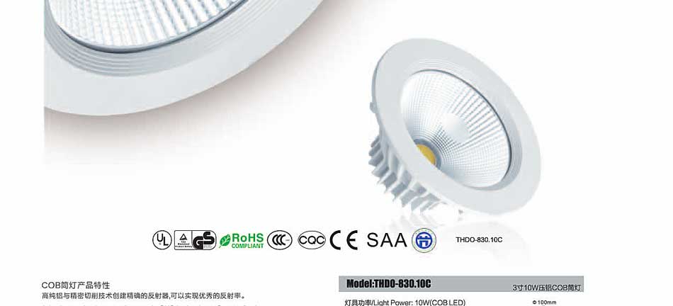 同辉电子科技股份有限公司   >   产品   >  同辉高亮3寸10W压铸铝COB足瓦足功率筒灯