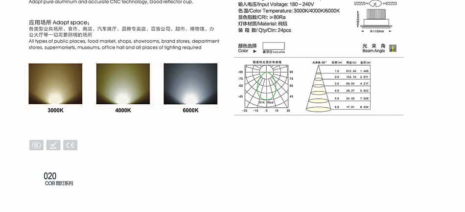 同辉高亮3寸10W压铸铝COB足瓦足功率筒灯