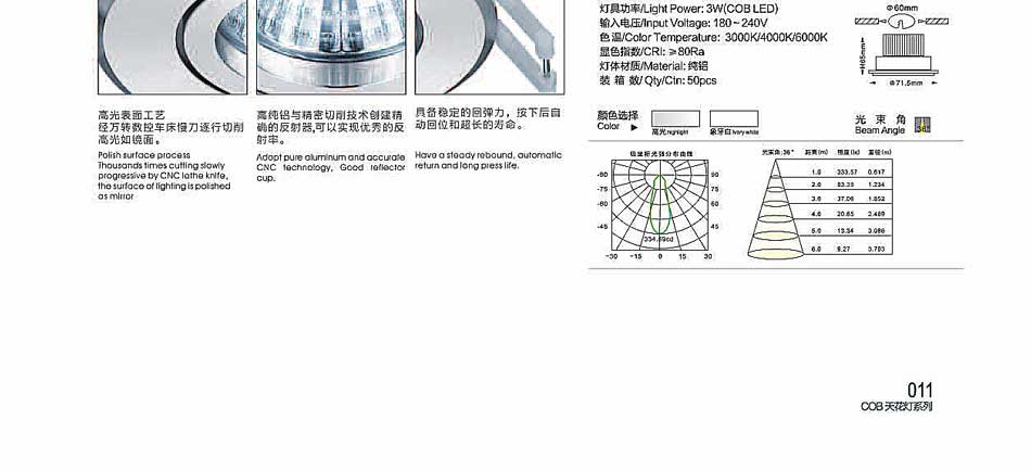 同辉高光3W平面COB天花灯纯吕高品质正品