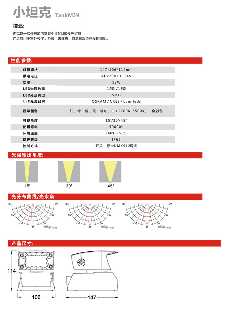 凯图电气的坦克系列是一款外形简洁富有个性的LED投光灯具,被广泛应用于室外楼宇,桥梁,古建筑和自然景观泛光投射照明中。