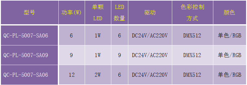 LED颜色(单色):红、黄、蓝、绿、白、暖白、琥珀