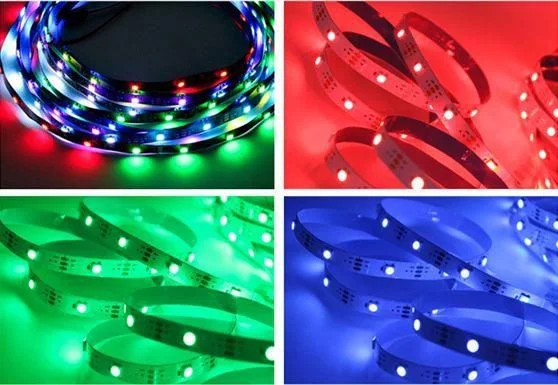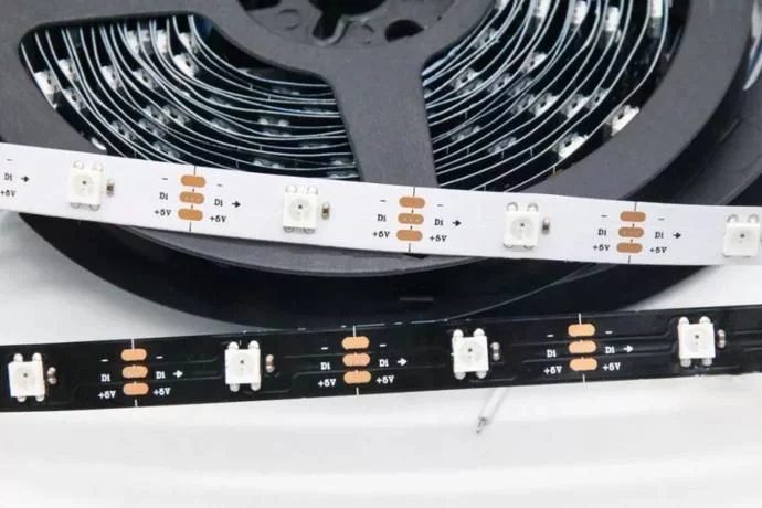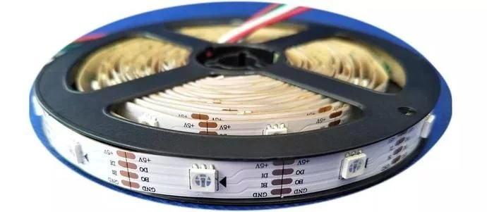 2、灯带带有智能IC芯,配备5V全彩控制器,可实现渐变/跳变,可实现单/多跑马变、流水/追逐变、流星/快闪、单色变/混和变等各种效果,比传统的单色灯条色彩更绚丽。
