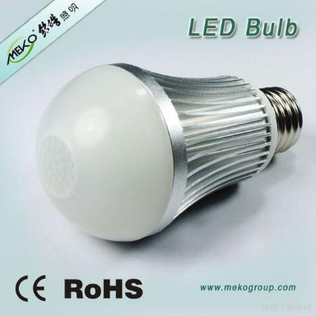 高亮感应球泡灯4/6W产品描述: 全铝灯体压铸成型,同时增加鳍片数量循环倒流空气。最大程度的解决了大功率LED散热难题。球泡灯系列产品中采用增光面罩(PC