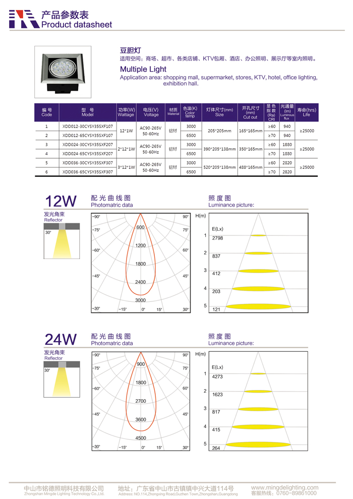 LED豆胆灯12W/24W/36W/LED格栅灯LED射灯节能高亮商场超市店铺商用灯