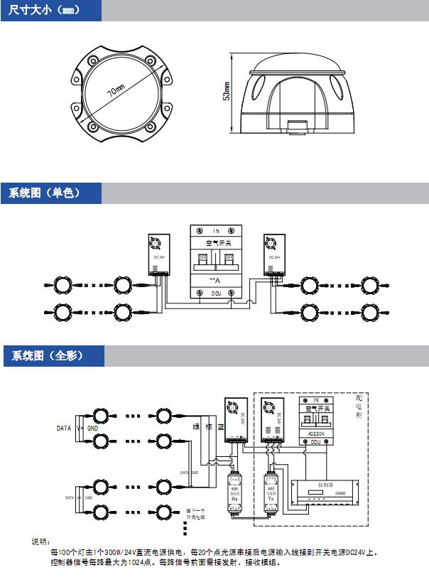 持单线移位传输信号控制系统,低功耗、高亮度输出,采用烤漆外壳,结构坚固、散热性能极佳、抗老化,抗变形,有着