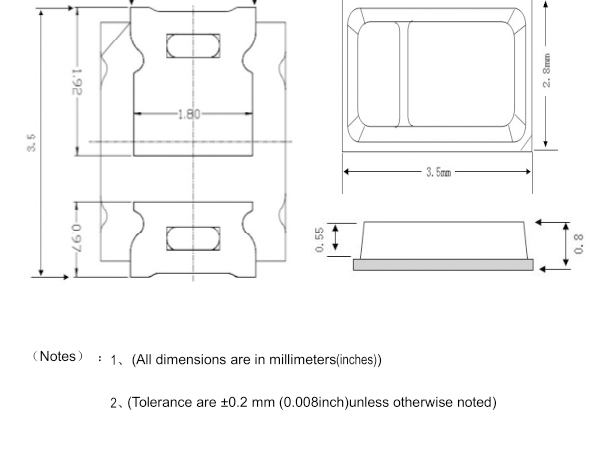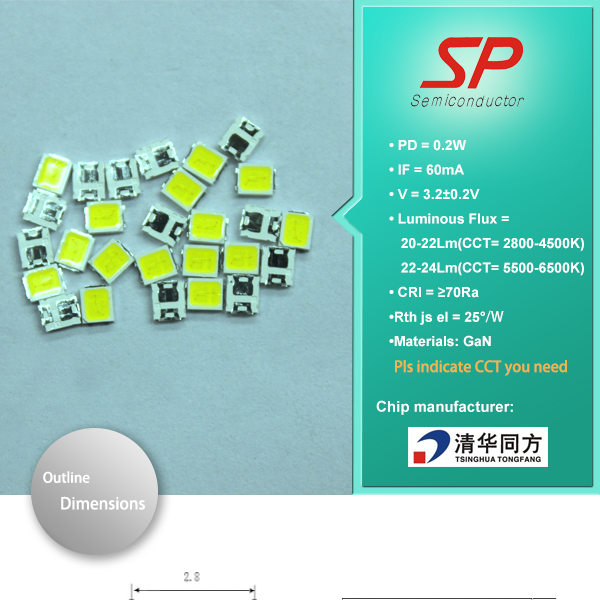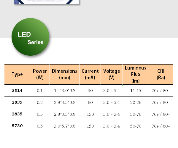 | 2835 | 0.2 | 2.8*3.5*0.8 | 60 | 3.0-3.2 | 20-26 | >70 or >80 |