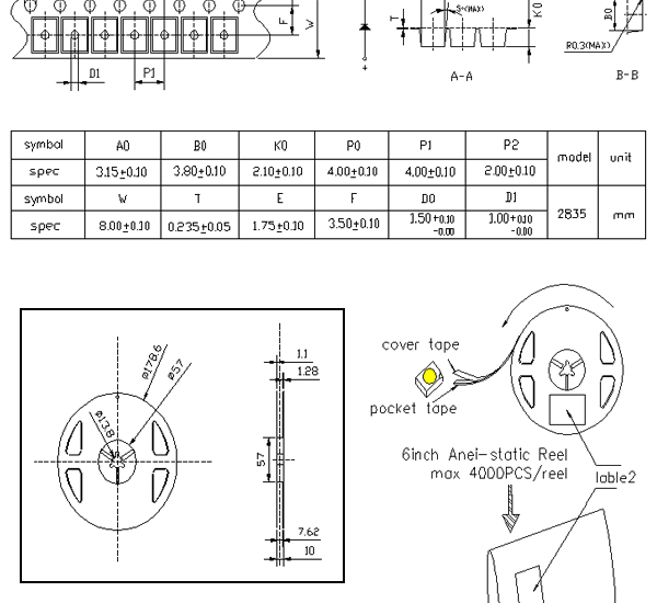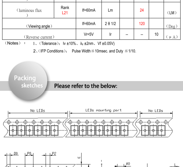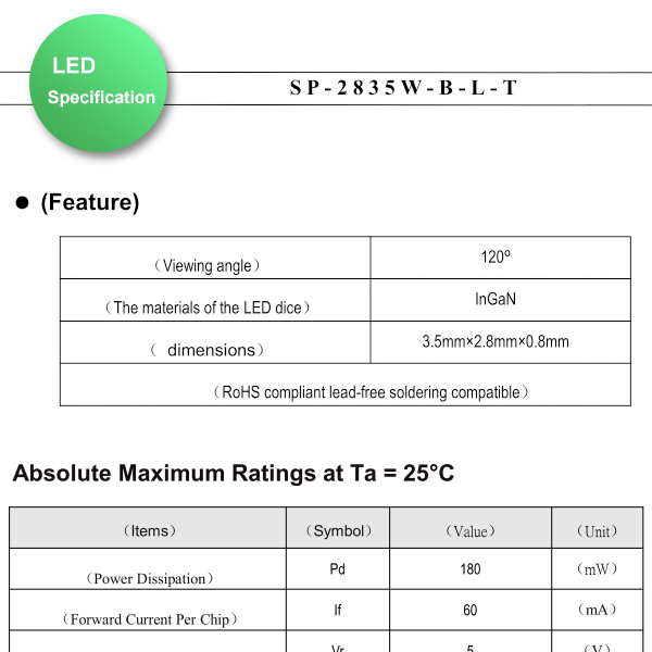 | 2835 | 0.5 | 2.8*3.5*0.8 | 60 | 6.0-6.4 | 45-60 | >70 or >80 |