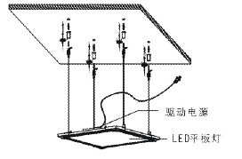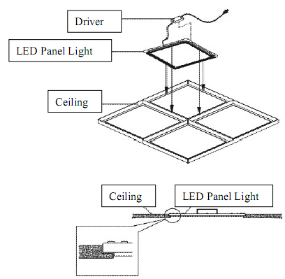 说明:将LED面板灯镶嵌在天花板开口,使LED面板灯卡在天花板开口内。