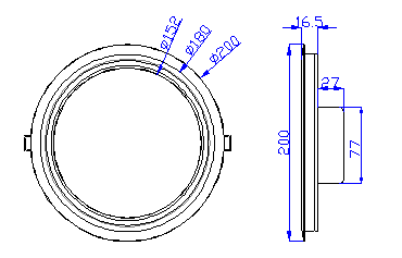 说明:将圆形LED面板灯镶嵌在天花板开孔中,使LED面板灯卡簧卡在天花板开口内。