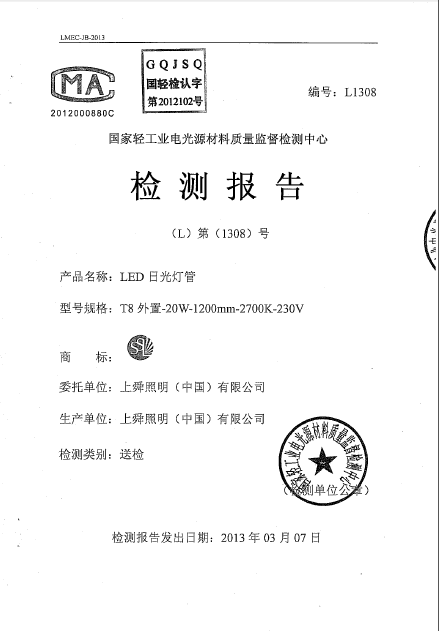 2. 产品采用创新的全玻璃管,铝基板后置加PC扩散罩的结构,使空间发光角比同类产品明显增大。结构稳定,阻燃,及防触电新性能好。