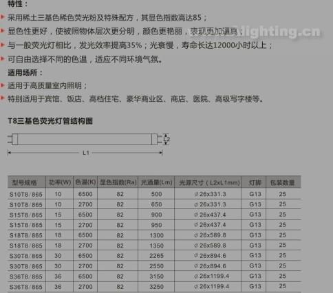 T8三基色高效节能荧光灯管