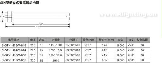 单H型插拔式三基色电子节能管