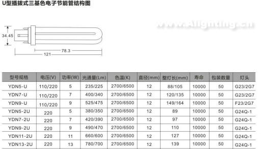 U型插拔式三基色电子节能管