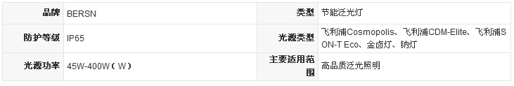 配用光源:飞利浦Cosmopolis45W/60W/90W/140W、飞利浦CDM-Elite210W/315W