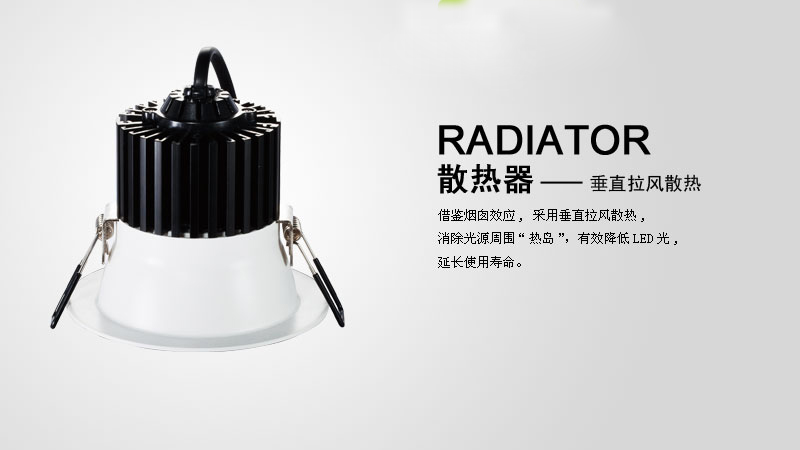 借鉴烟囱效应,采用垂直拉风散热,消除光源周围“热岛”,有效降低LED光衰,延长使用寿命。