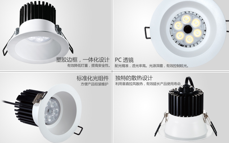 标准化筒灯组件,方便产品扩展,组装与维护。
