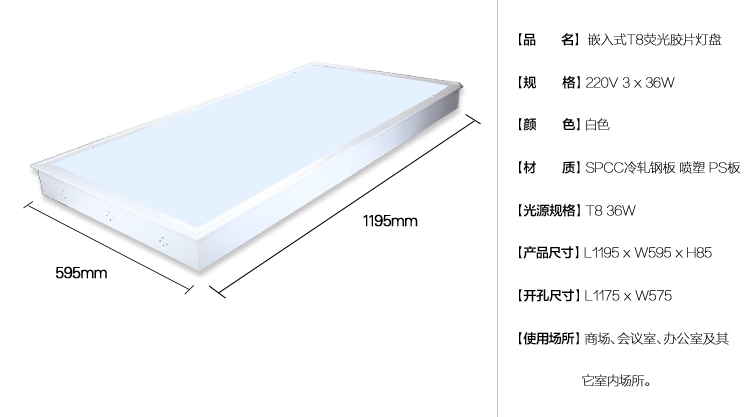 天楹之光-LED嵌入式T8荧光胶片灯盘