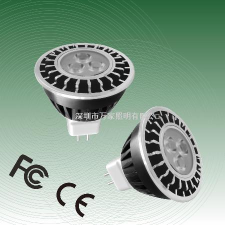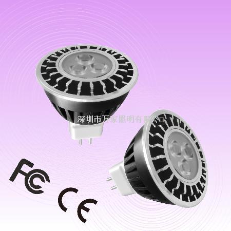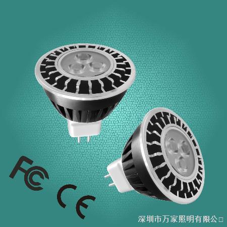 使用电压:12V AC/DC; 尺寸:50*49mm;接头:MR16,GU10;总功率:3.4W;发光角度:15,30,60度;发光效率:77lm/w;灯杯颜色