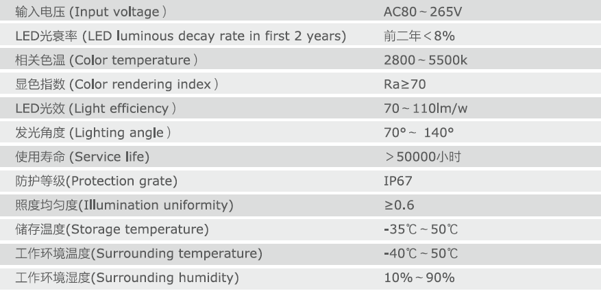 灯具采用耐高温密封圈,有效防止气体粉尘入侵