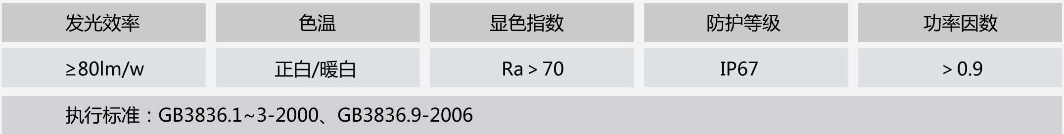 特殊设计的密封结构,LED光源组件全部密封,防尘、防水、耐腐蚀,外壳防护等级达IP67;
