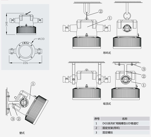 根据安装方式不同,部分灯具出厂时已配电缆,省去配线工作,直接安装使用;
