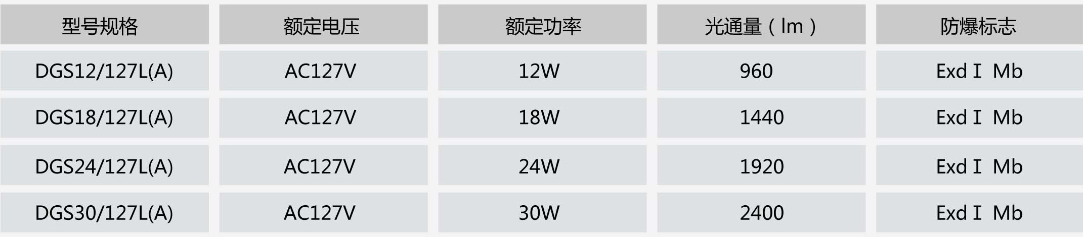 四种型号产品可选: DGS12/127L(A), DGS18/127L(A),DGS24/127L(A),DGS30/127L(A)。