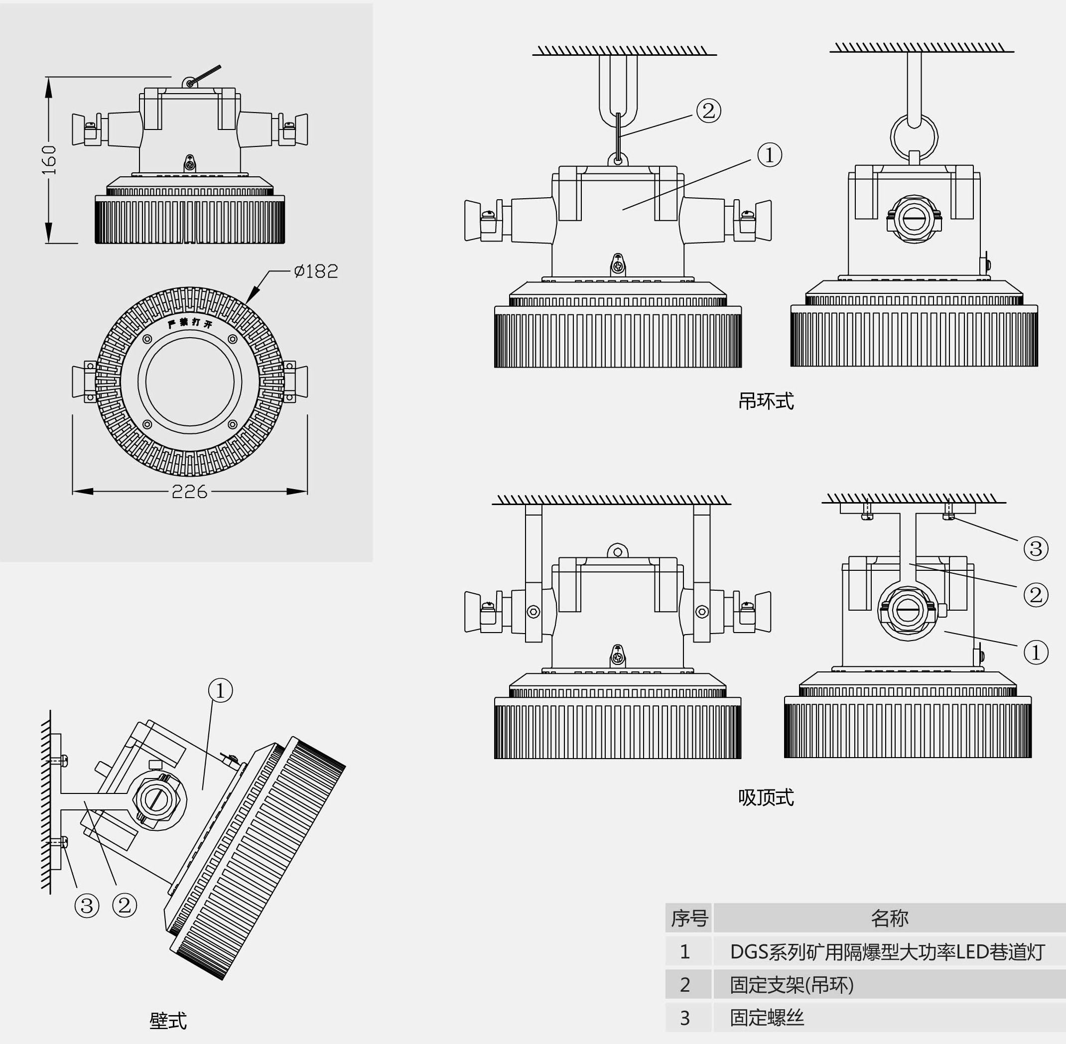 根据安装方式不同,部分灯具出厂时已配电缆,省去配线工作,直接安装使用;